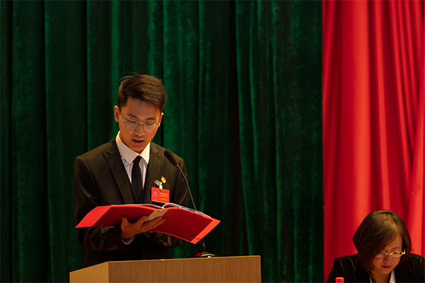 团市委学校部部长葛菲发表讲话,对本次学代会的胜利召开表示热烈的祝贺,高度赞誉了学院青年学生做出的突出贡献,对盘锦职业技术学院学生会和青年学生提三点希望:一是坚定理想信念,不忘初心跟党走;二是树立大局意识,竭诚服务青年;三是加强自身建设,有效组织青年。