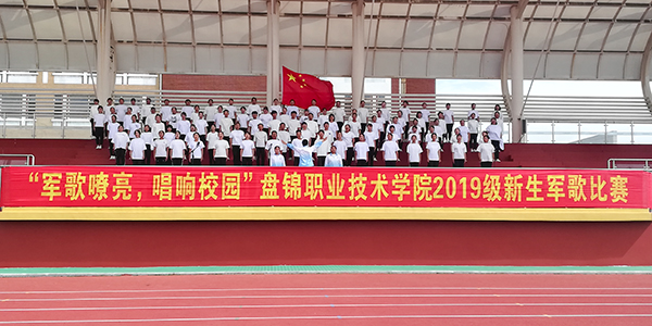 为庆祝新中国成立70周年,彰显2019级新生军训成果,提高大学生国防观念,增强团队凝聚力,营造积极向上的校园文化氛围, 9月11日13:00,学院学生工作处在体育场举行“军歌嘹亮 唱响校园”盘锦职业技术学院2019级新生军歌比赛。比赛评委由部队领队教官和各分院系副书记担任。