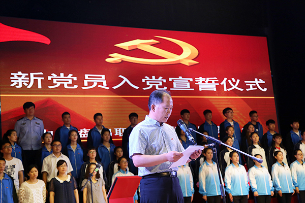 宣誓仪式由团委副书记蔡志远主持。在建党组织员田琳同志的带领下,50名预备党员面对鲜红的党旗,庄严地举起右手,向党旗宣誓,立下了他们人生中矢志不渝的誓言,表达了为共产主义事业奋斗终生的决心!宣誓场面庄重严肃,每一句誓言都发自肺腑,震撼人心。