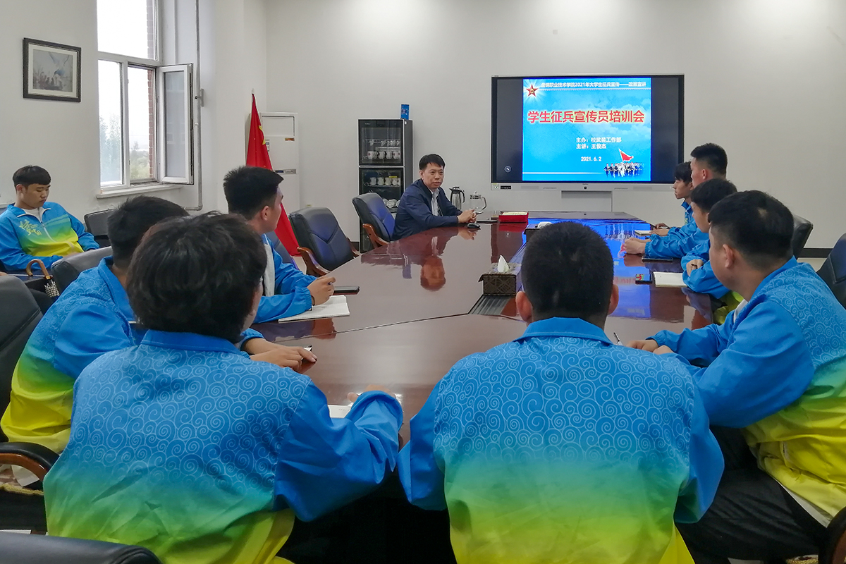 为加强征兵政策宣传、激发大学生参军报国热情,6月2日晚,学校武装工作部在博远楼三楼会议室组织召开大学生征兵宣传员业务培训会。来自八个学院的8名大学生征兵宣传员和部分应征报名同学参加了培训。培训会由武装工作部王俊杰老师主持。