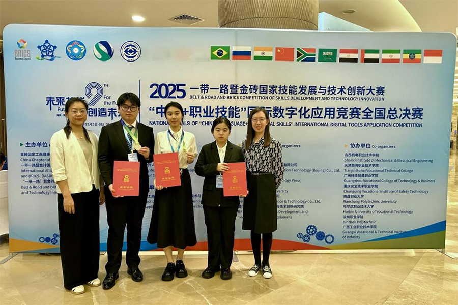 近日,由金砖国家工商理事会中方理事会、一带一路暨金砖国家技能发展国际联盟、一带一路暨金砖国家技能发展与技术创新培训中心主办的“一带一路”暨金砖国家技能发展与技术创新大赛之“中文+职业技能”国际数字化应用大赛,在海南博鳌亚洲论坛国际会议中心拉开了帷幕,我校学生在此项赛事一举摘得一等奖一项、二等奖两项、三等奖一项。本次赛事经过区域赛激烈的角逐推选出优秀选手参加全国总决赛,各区域赛共计选出500余支代表队。其中,我校师范教育学院刘佳彤在一众中职组参赛队中脱颖而出,取得全国总决赛一等奖;经济管理学院李世豪、刘安琪获高职组二等奖,张馨方获高职组三等奖。