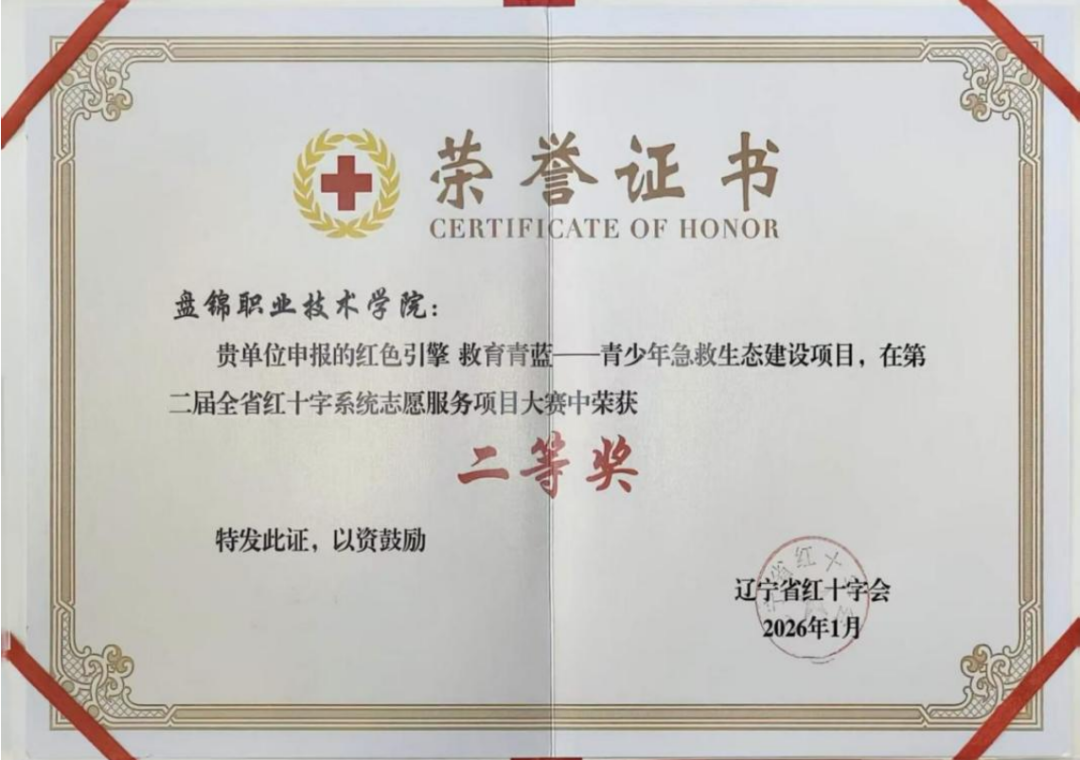 长期以来,我校红十字会始终将志愿服务作为重点工作常抓不懈,持续加强志愿者队伍建设、完善服务体系、创新活动载体,打造出一系列立足校园、服务社会、特色鲜明的志愿服务品牌。此次荣获省级大赛二等奖,既是对项目成效的高度肯定,也为我校红十字会志愿服务工作注入了新的动力。未来,我校将以此次获奖为契机,进一步深耕志愿服务项目建设,吸引更多青年学子投身红十字事业,将急救教育与生命关怀做细做实,以点滴志愿微光汇聚温暖炬火,为守护群众生命健康、助力社会文明进步、推动辽宁红十字事业高质量发展贡献盘锦职院的智慧与力量。
