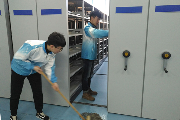 接着,青年志愿者到所分派的区域、库、室开展擦书架、抹书桌、拖地、安装桌椅板凳、新进图书分类、新进图书粘贴磁条、图书上架、花卉摆放浇灌等义务劳动。