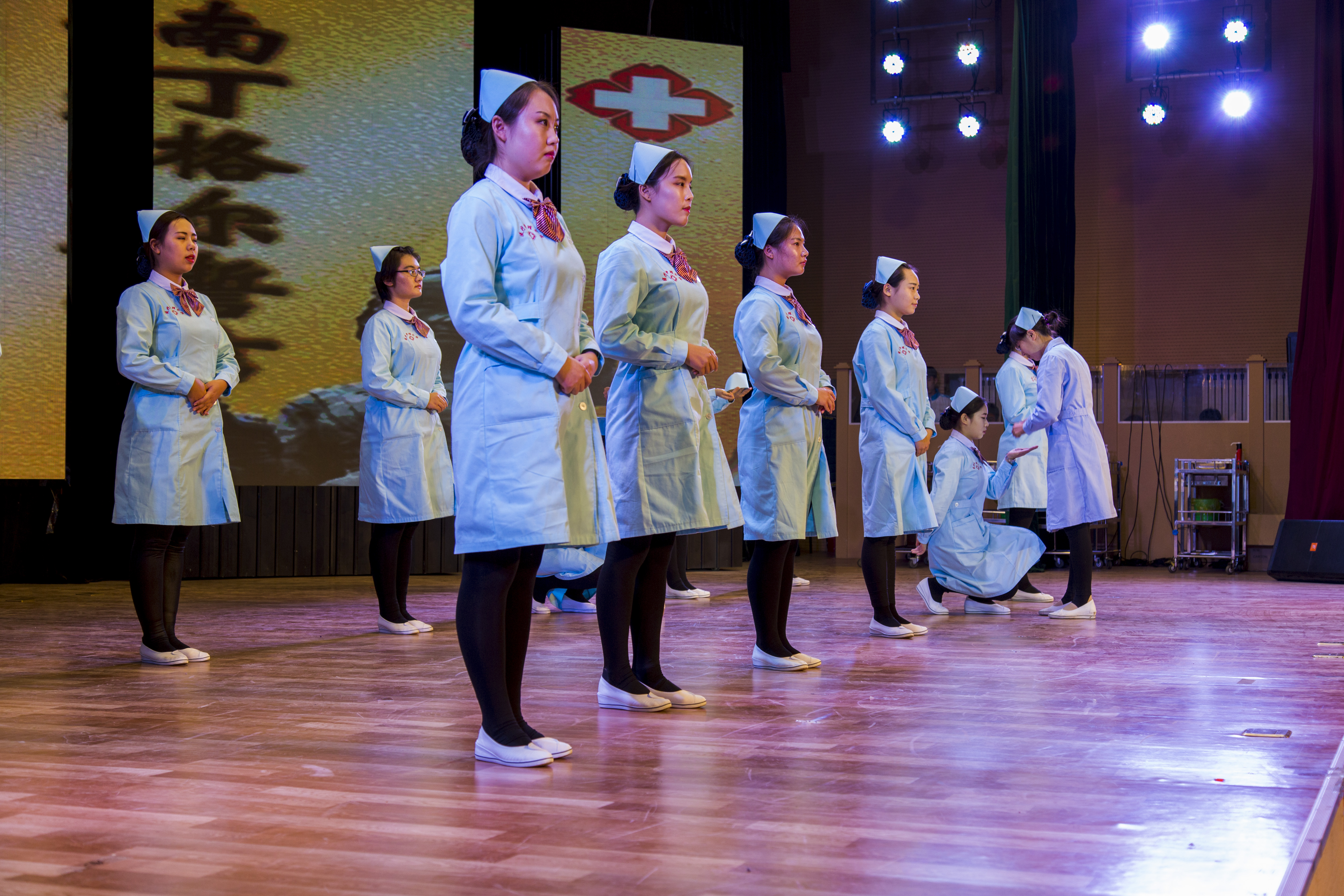 本次大赛共分为参赛者宣誓、礼仪比赛、技能比赛以及文艺表演四个部分,与去年的首届大赛相比内容更加丰富,更能体现出我分院的特色。大赛以一支优美的舞蹈《中国护士之歌》拉开帷幕。