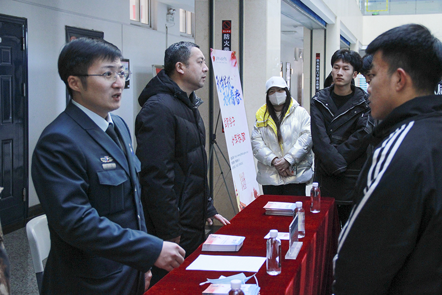 我校开展“盘锦职院学子立志从军 热血青年精忠报国”征兵宣传进校园活动