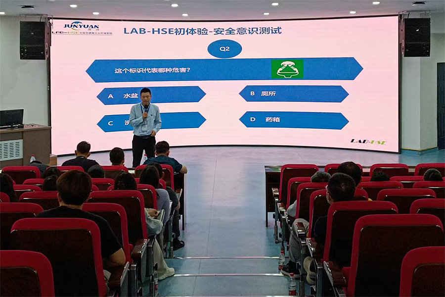 本次实验室安全培训内容主要分为四部分,一是由君源环保研发中心陈坚老师做2023年实验室化学品安全通识培训;二是由君源环保董事长屈俊勋进行实验室事故预防与安全处置培训;三是对所有实验员老师进行实验室安全考核;四是对校内实验实训室进行安全检查。