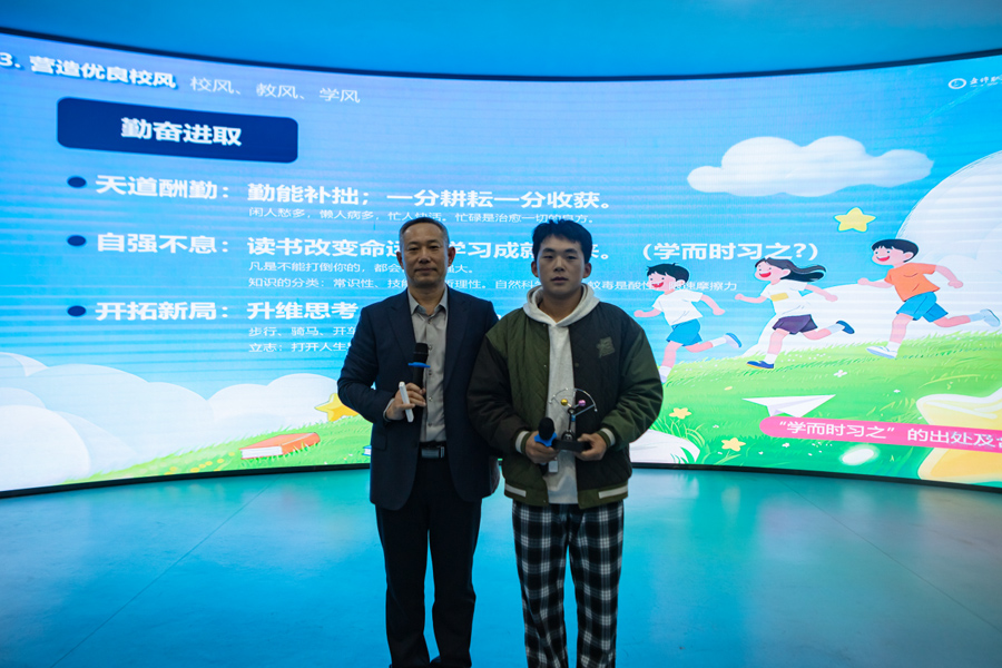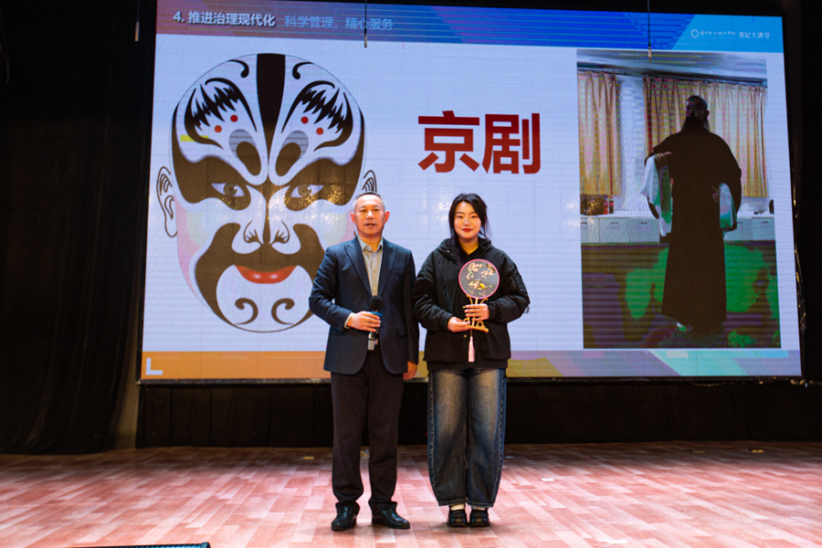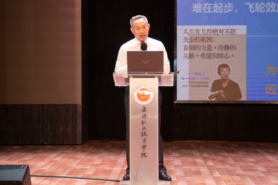 王首中书记以深厚情怀与育人智慧,在新生初入大学之际,送上了一堂堂有温度、有深度、有高度的大思政课,引导学生珍惜青春、不负韶华,以实际行动书写无悔大学时光。专题讲座围绕站在新起点的思考、建设百年校园、营造良好校风、推行现代化治理、倾力全方位成长等五个方面展开。讲座现场气氛热烈,他以“如果你为错过了太阳而懊悔,那么请珍惜当下的月亮”等富有哲理的话语开场,鼓励新生树立积极心态,摒弃迷茫与焦虑,在心中“种下太阳”,从容扎根、努力生长。通过营造书香校园、构建阳光校园、打造智慧校园、创建平安校园、塑造美丽校园等路径探索建设百年校园,实现师生齐努力、校园更美好的愿景目标。围绕如何营造优良校风,他结合自身经历与人生体会,从严谨务实、勤奋进取、文明健康、遵纪守法、公平正义、善良诚信、风清气正、开放开明等方面,生动阐释“校风就像气候,春风送暖,百花盛开”,勉励师生“用生命影响生命”,共同营造温暖向上、富有幸福感的校园氛围。在推进治理现代化方面,详细介绍“三个一切”——“一切为了学生的健康成长、一切为了教职员工的幸福工作、一切为了盘锦职院的高质量发展”,并分享了“关爱行动”“晚自习革命”“百团大战”等一系列创新举措,号召全校教师用教育家精神办教育,用系统思维谋划工作、用法治思维进行治理、用管理思维取得效能、用人本思维带好队伍、用修行思维抓好作风、用教育家思维不断改善、遵循教育的本质和规律,充分体现学校以生为本、科学管理、精心服务的坚定决心。如何倾力学生全方位成长方面,他结合我校“涵养优品质、习得强技能、养成好习惯、保持健身心”的培养目标,深刻诠释“五育并举”的育人理念,强调“知识是基础,技能是力量,良知是方向”,引导学生注重品格锤炼与全面发展。讲座中穿插有奖问答、才艺展示等互动环节,学生的热情参与将现场气氛推向一个又一个的高潮。他本人更是亲自展示京剧片段而赢得阵阵掌声,让在场师生深切感受到中华优秀传统文化的魅力。