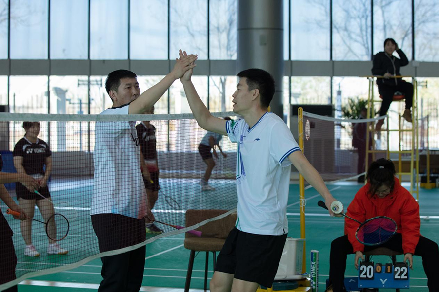 本次比赛由学校工会副主席王泽喜、体育工作部兼教职工体育活动中心主任毛春风领队,校羽协会长张贺公、秘书长管震带队,学校羽毛球协会的十四位运动员参赛。比赛历时七天,经过紧张激烈角逐,我校教工斩获混合团体冠军、男子单打冠亚军、男子双打冠亚军、混合双打冠亚军、女子单打亚军、女子双打亚军等六项骄人佳绩。学校党委副书记李兵亲临现场指导。