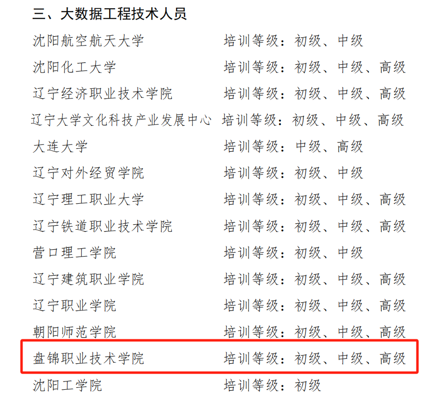 2025年1月8日,省人力资源和社会保障厅公布辽宁省数字技术工程师培育项目第三批培训机构名单,我院获得“物联网工程技术人员”“工业互联网工程技术人员”“人工智能工程技术人员”“大数据工程技术人员”“云计算工程技术人员”“数字化管理师”六个职业方向的数字技术工程师培训资质。