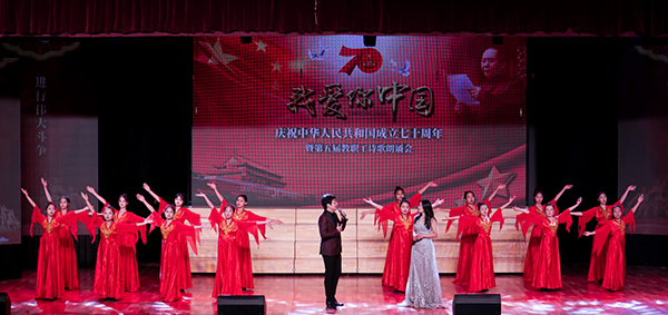 10月18日下午“我爱你中国——庆祝中华人民共和国成立七十周年”诗歌会暨第五届教职工诗歌朗诵会在大学生艺术活动中心举行。本次活动由学院工会主办,学院领导班子成员、全体教职工...