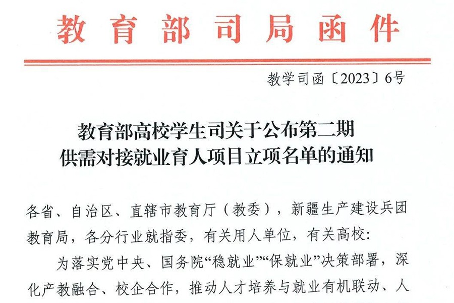 近日,教育部高校学生司印发《关于公布第二期供需对接就业育人项目立项名单的通知》(教学司函〔2023〕6号),我校建筑工程学院联合企业申报的定向人才培养培训项目喜获立项。教育部...