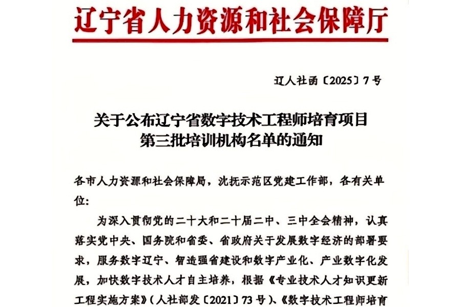 2025年1月8日,省人力资源和社会保障厅公布辽宁省数字技术工程师培育项目第三批培训机构名单,我院获得“物联网工程技术人员”“工业互联网工程技术人员”“人工智能工程技术人员”...
