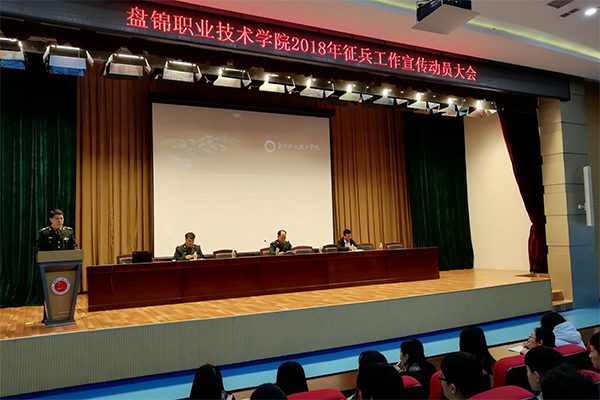 3月16日下午盘锦职业技术学院2018年征兵工作宣传动员大会在学院图书馆报告厅召开。学院党委副书记、武装部部长李兵,学生工作处处长、武装部副部长邓红伟,盘锦市辽东湾新区政法统战...
